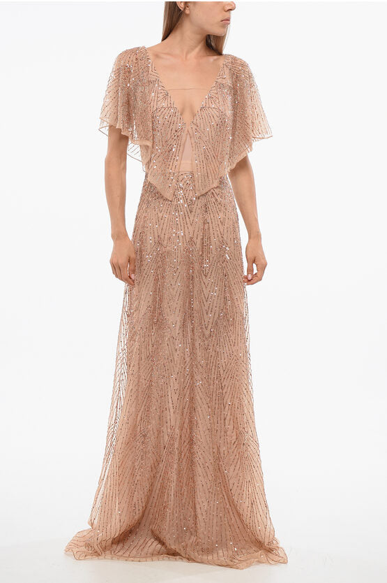 スパンコール シフォン ドレス ウィズ バタフライ スリーブ