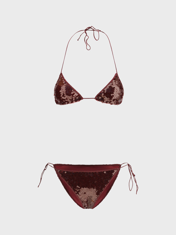 OsEreeのメアリンスイムスーツは、クラシックなトライアングルビキニを鮮やかにアレンジ。ネック、背中、ヒップに施されたレースがフィット感を調節し、快適な着心地を提供します。