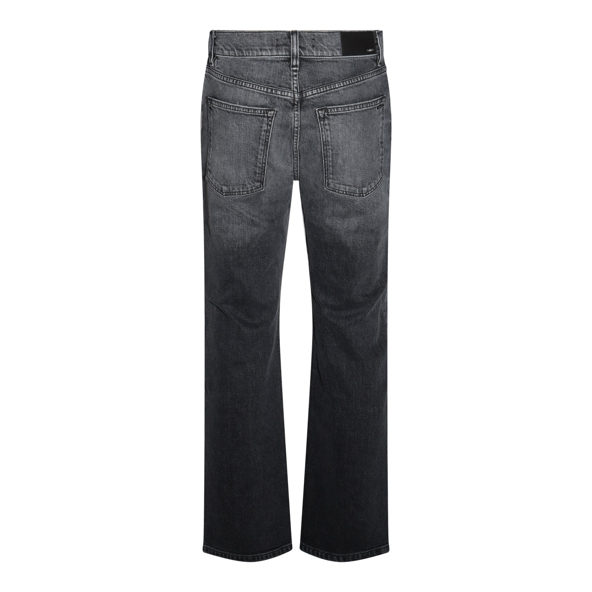 グレーのコットンジーンズです。フロントはジッパーとボタンで開閉し、ベルトループとポケットが付いています。