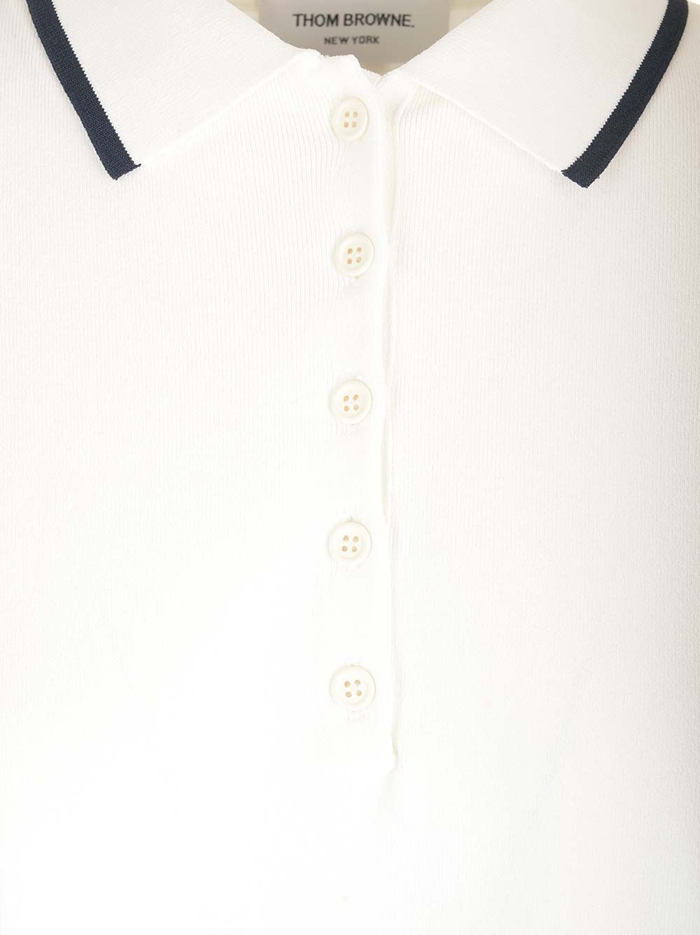 Boxy fit polo shirt in white viscose jersey and striped profiles by Thom Browne.