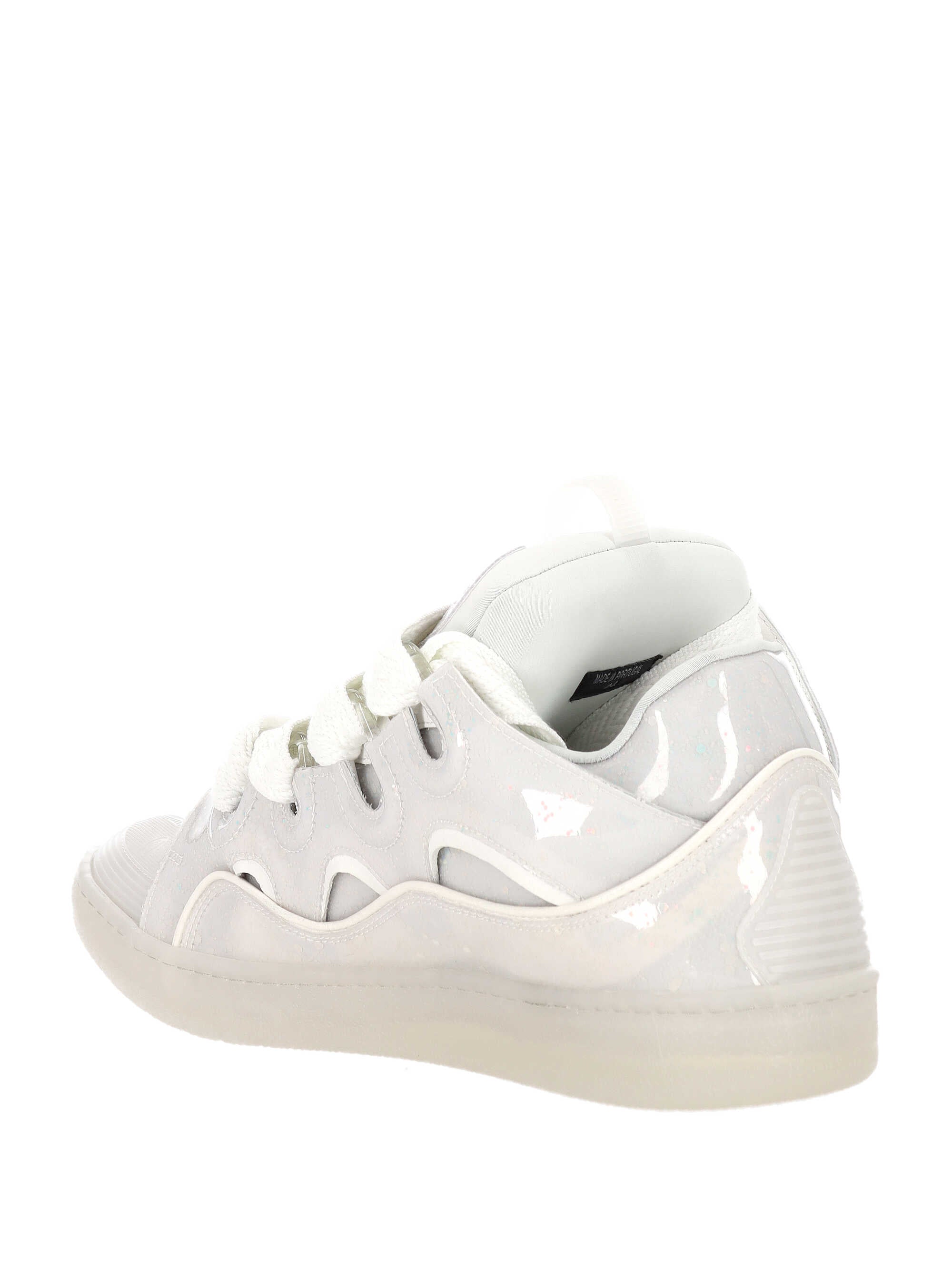 ホワイト ポリ塩化ビニル アッパー ラバーソール カットアウト ディテール レースアップ ファスナー グリッターエフェクト