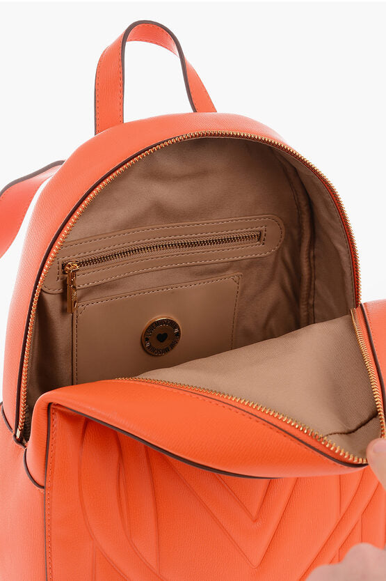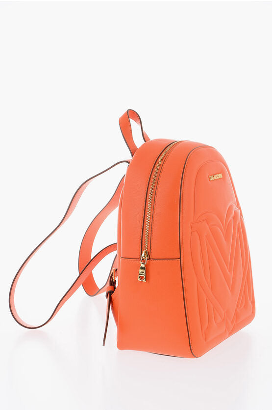 LOVE Solid Color Faux Leather Backpack with Golden Logo