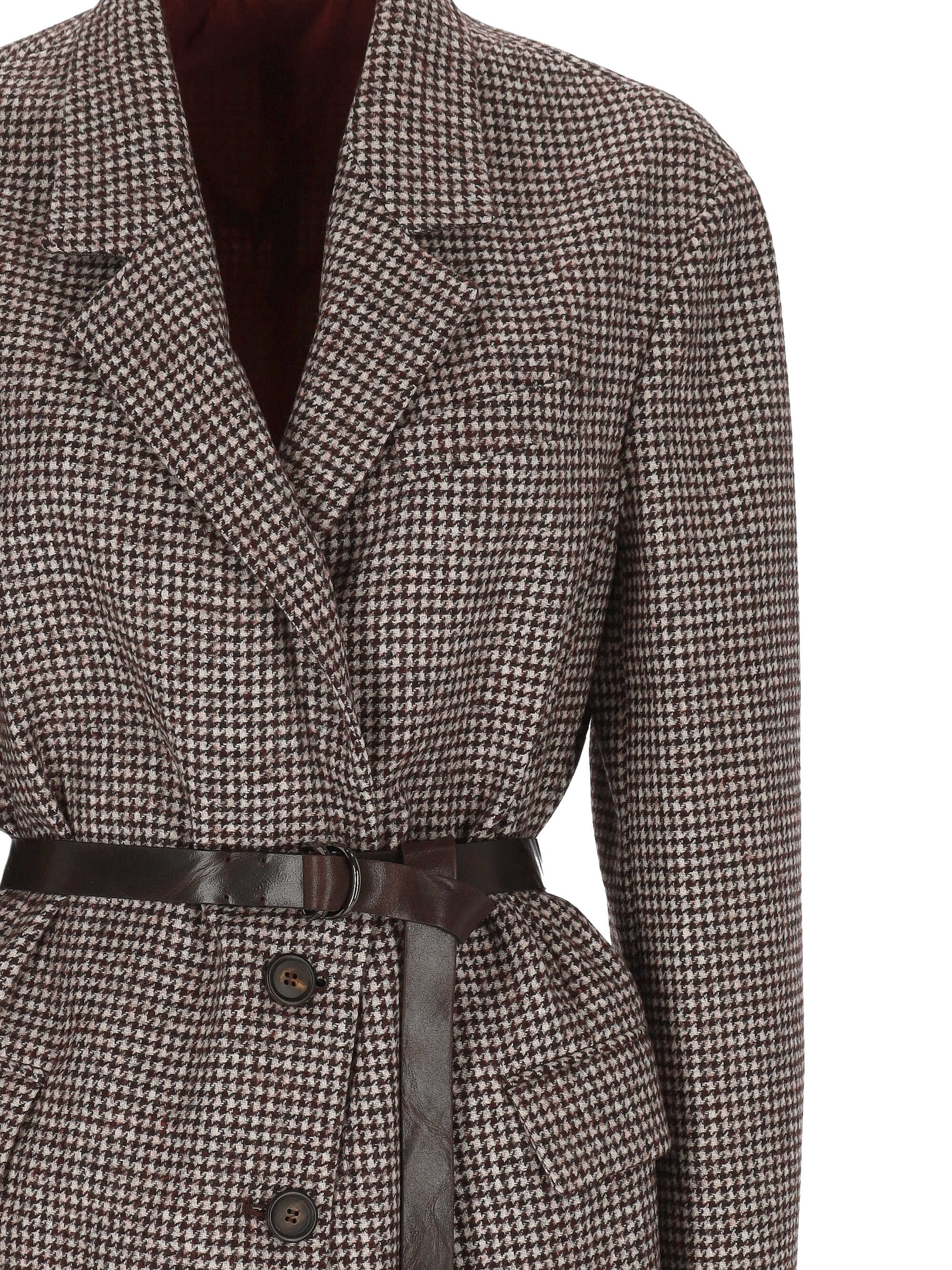 ブラウンボタンフロント取り外し可能ベルトノッチドラペルフロントポケットコントラストライニング