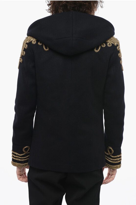 Wool Blend BRANDEBOURG SPENCER Coat with Hood