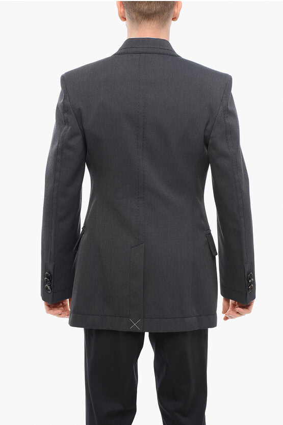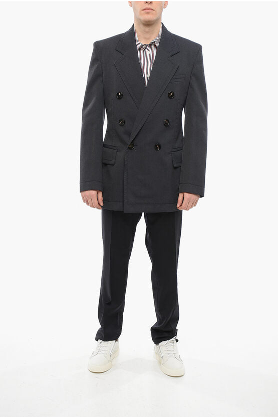Double-breasted Twill Wool Blazer with Visible Stitchings