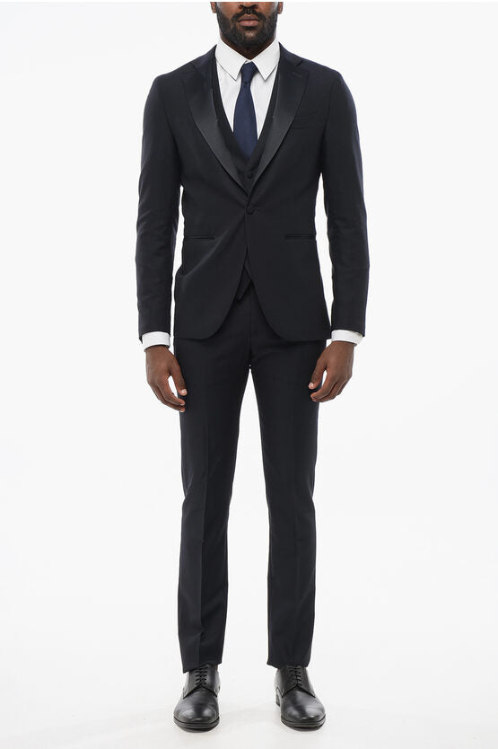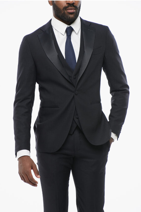 Wool Single Breasted Blazer With Satin Lapel