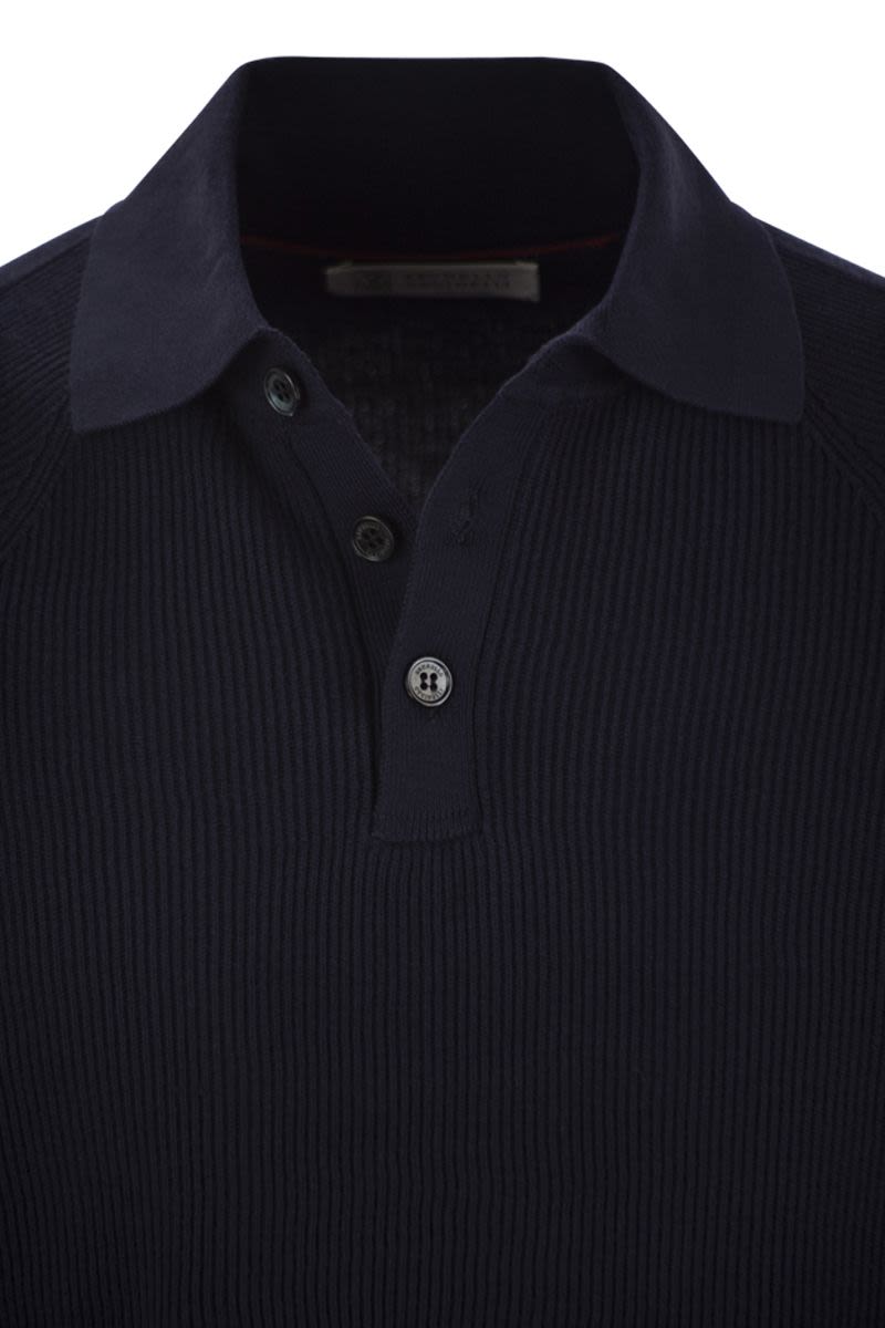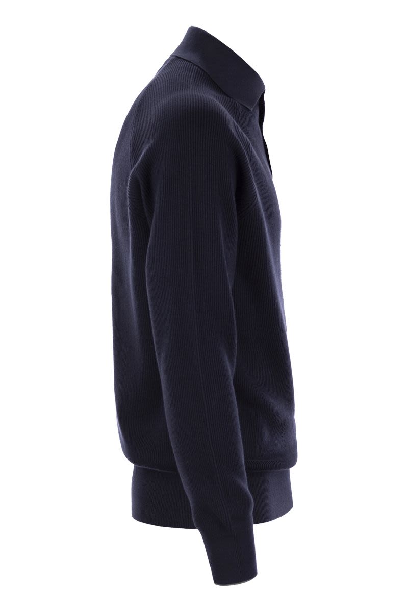 コットン リブ ニット ポロ シャツ ウィズ ロング ラグラン スリーブ