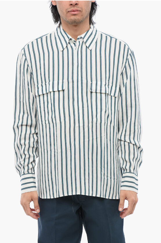 Striped Shirt with Double Breast Pockets and Classic Collar